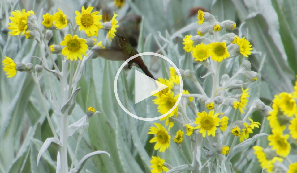 Sus hojas blancas, alargadas y pubescentes contrastan con sus brillantes inflorescencias amarillas, que captan la atención de diversos polinizadores siendo uno de sus visitantes más recurrentes el Colibrí picoespina.