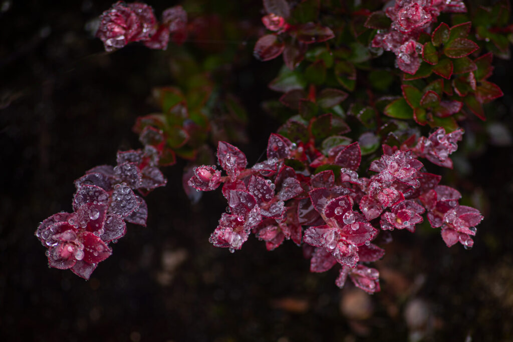 - Disterigma empertrifolium. Andes 3000 -4600 mts.. Nativa. Conocida como mortiño.