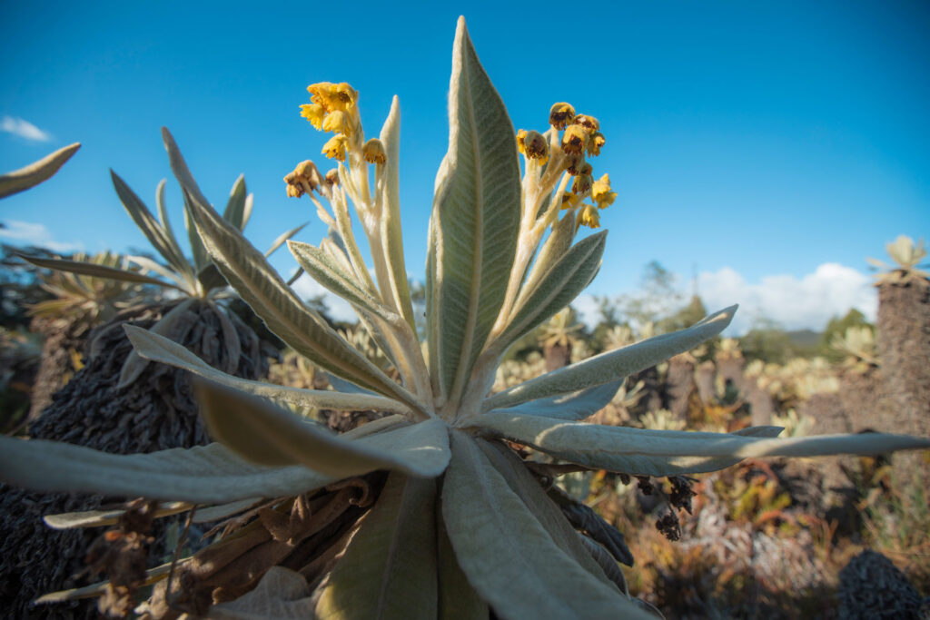 Se estima que en los páramos de Colombia existen cerca de 4.700 especies de plantas, lo que equivale al 17% de la diversidad florística del país en apenas el 2.5% de su territorio continental, convirtiendo a estos ecosistemas en áreas con una alta riqueza de especies (IaVH, 2015). Una de las preguntas más complejas gira en torno a cómo esta diversidad vegetal es capaz de adaptarse a ambientes estresantes y condiciones climáticas exigentes y variadas, tales como bajas temperaturas, alta humedad, fuertes vientos y alta radiación solar. Estos factores están influenciados por la topografía única de los Andes, los suelos fértiles gracias a la actividad volcánica, el clima, la hidrología y la influencia glaciar. Todos estos elementos, en conjunto, caracterizan los heterogéneos ecosistemas paramunos.