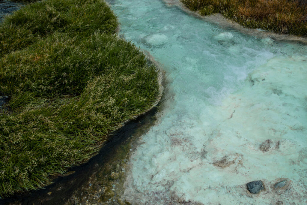 Si detallamos las hojas de los frailejones, podemos ver una capa densa y homogénea de vellos blancos y dorados, al tacto estas hojas son suaves y aterciopeladas, siendo su textura bajo la lluvia aún más evidente. Estas vellosidades, llamadas tricomas, crean una barrera entre la hoja y el entorno, contribuyendo a la termorregulación y reduciendo la transpiración al retener la humedad, son para la planta una capa protectora contra la altísima radiación solar ya que esta pubescencia puede reflectar más del 20% de la radiación y reflejar el exceso de fotones que no pueden ser usados en la fotosíntesis, evitando la fotooxidación (Castiblanco et al., 2021).