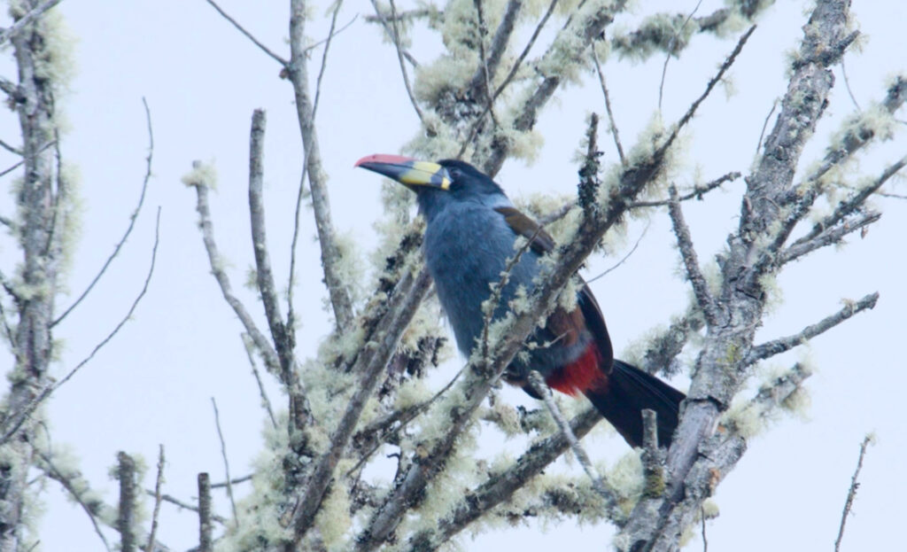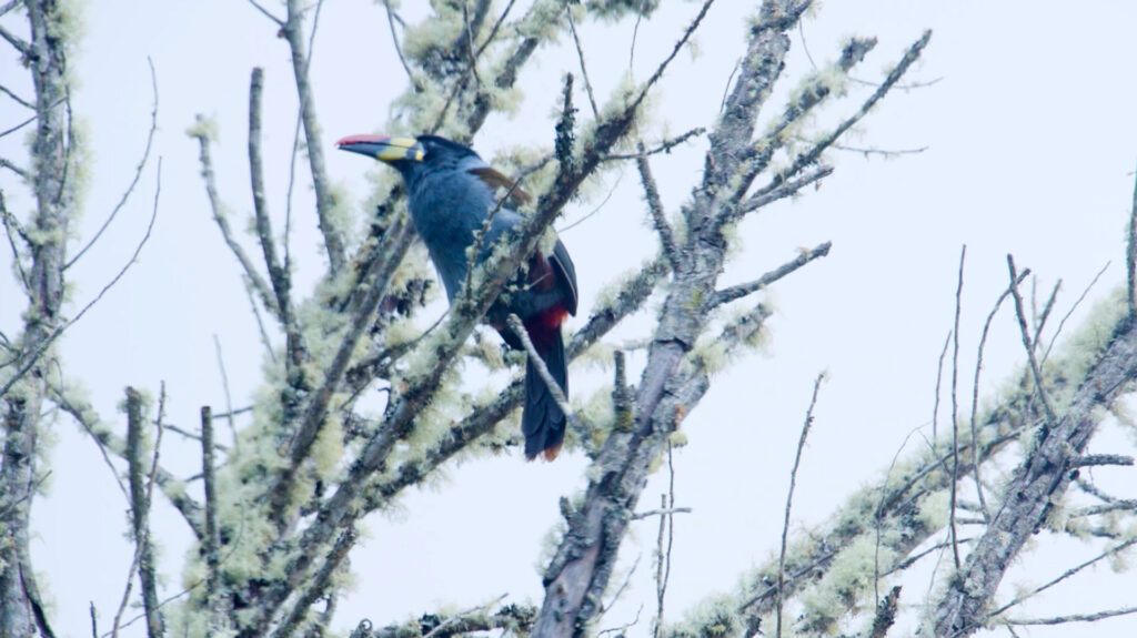 El pico del Tucán Pechigris, con sus llamativas rayas en tonos coral, amarillo y negro, no solo destaca entre el denso follaje del bosque nublado, sino que también lo distingue de otros tucanes con plumajes similares. Esta majestuosa ave se encuentra en Colombia, específicamente en la cordillera Central y el macizo colombiano en la vertiente oriental de Nariño y Putumayo, extendiéndose desde el complejo de Los Nevados hasta Perú y Ecuador.